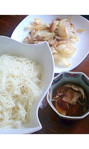 豚のしょうが焼風温つけめん 半田めん 半田そうめん のおすすめレシピ 公式通販 手延半田めん 半田そうめんの小野製麺