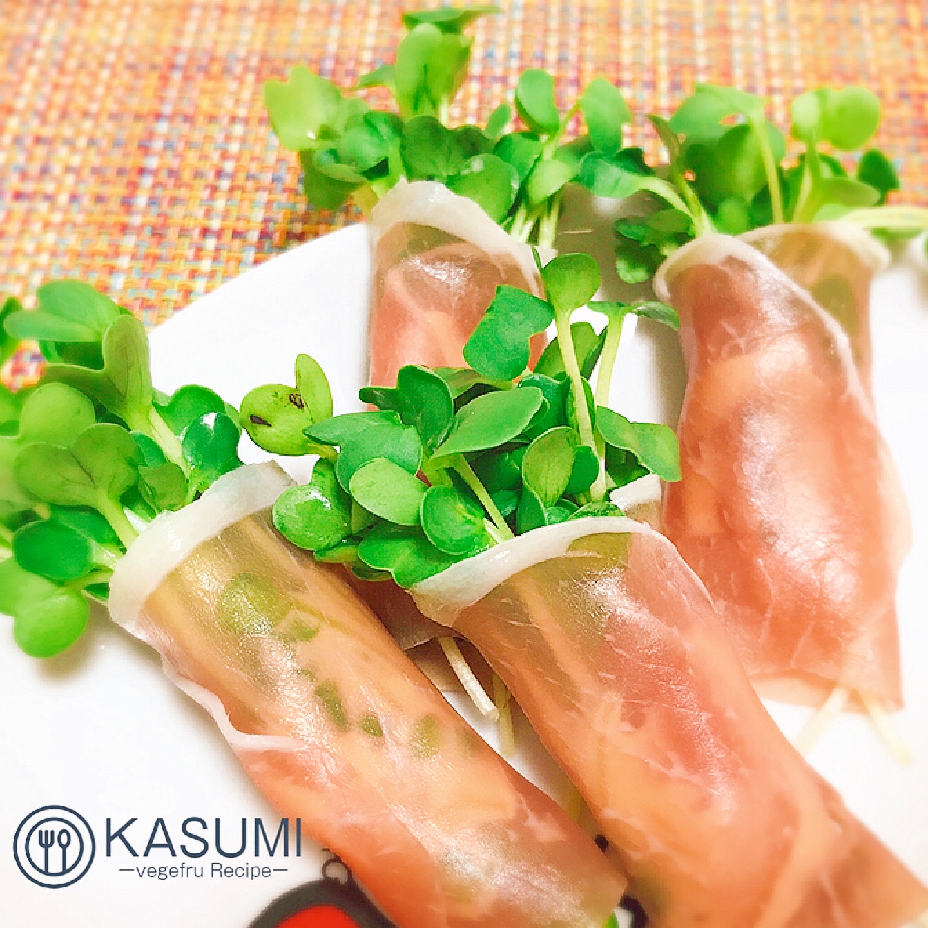 クルクルするだけ かいわれ大根の生ハム巻きサラダ レシピ 作り方 By Kasumi Vegefru Recipe 楽天レシピ